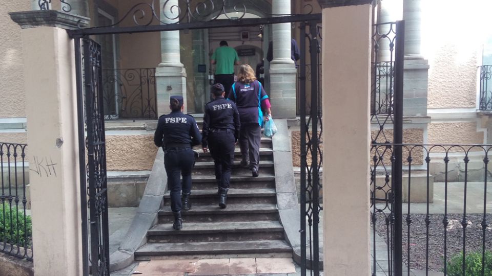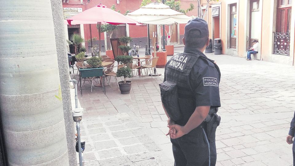Policias cuidan mesas y sillas