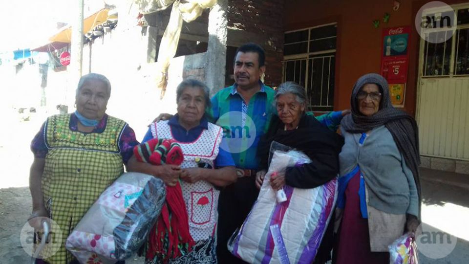 Regalan cobijas a adultos mayores