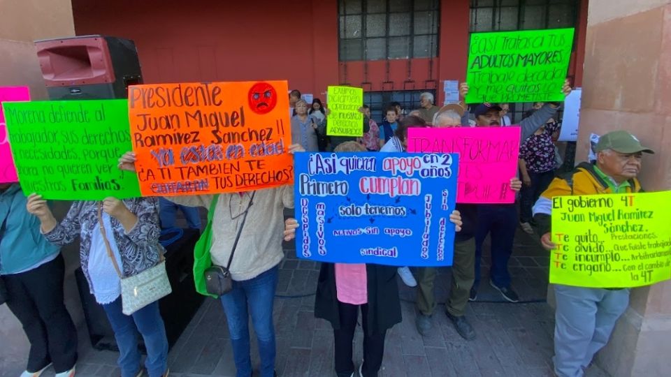 Tal y como ocurrió en sus manifestaciones previas, los extrabajadores mostraron sus inconformidades a través de pancartas, donde piden que se les respeten sus derechos laborales como jubilados.