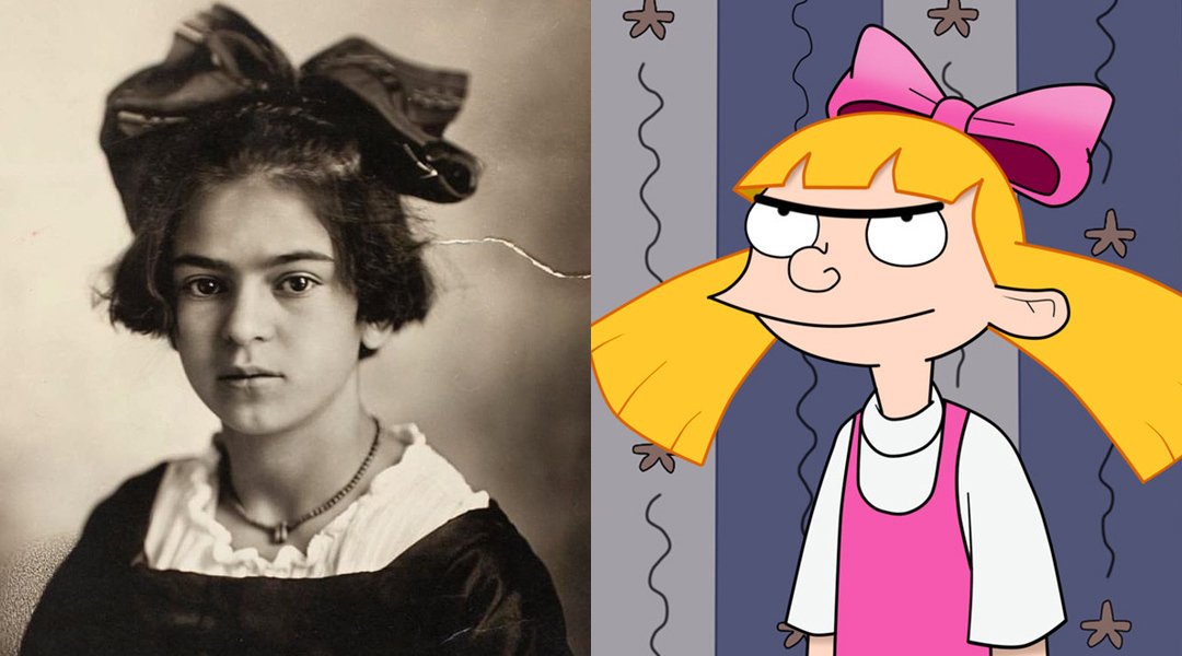Craig Bartlett, creador de la caricatura, que gozó de gran popularidad en México en los años noventa, confirmó al diario venezolano “El Estímulo” que “Helga”, eterna enamorada del protagonista, se basó en una fotografía de cuando Kahlo era niña, donde luce con un enorme moño, muy similar al del personaje de Bartlett.