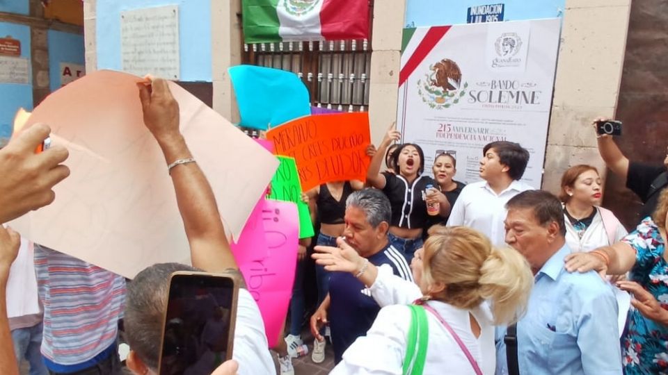 Al inicio, la situación se mantenía pacífica. Sin embargo, cuando los manifestantes inconformes colocaron una cinta a modo de “clausura” en la entrada del edificio municipal, una persona del grupo que apoya al gobierno la retiró violentamente, lo que provocó el inicio de los insultos.