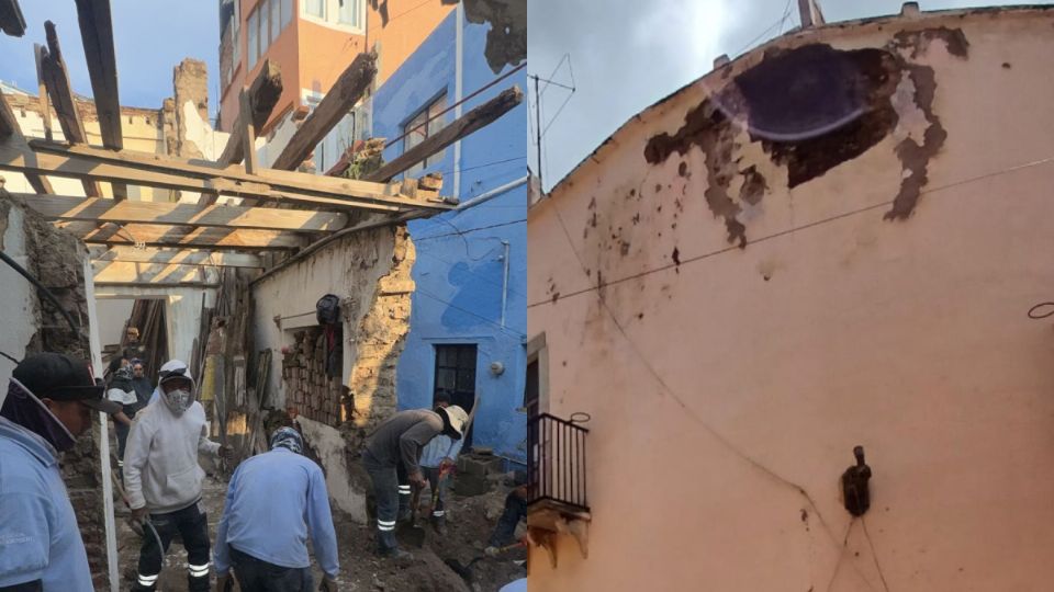 Guanajuato, Guanajuato.- Debido a lo antiguo, la falta de mantenimiento y el reblandecimiento de las estructuras a causa de las recientes lluvias, se registró un derrumbe en Guanajuato capital que movilizó a cuerpos de emergencia. Por fortuna no hubo lesionados.