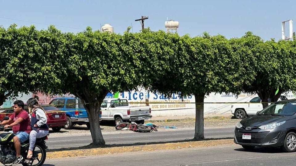 El hombre quedó tirado boca abajo, usaba playera negra, pantalón de mezclilla azul y tenis negros. Junto al cuerpo estaba una motocicleta tipo Cross roja con blanco.