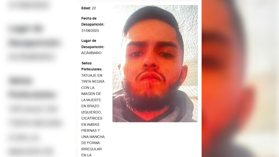 Según lo reportado por su familia a las autoridades, Pablo Duarte Ortega tiene un tatuaje en tinta negra con la imagen de la muerte en el brazo izquierdo, cicatrices en ambas piernas y una mancha irregular en la espalda.