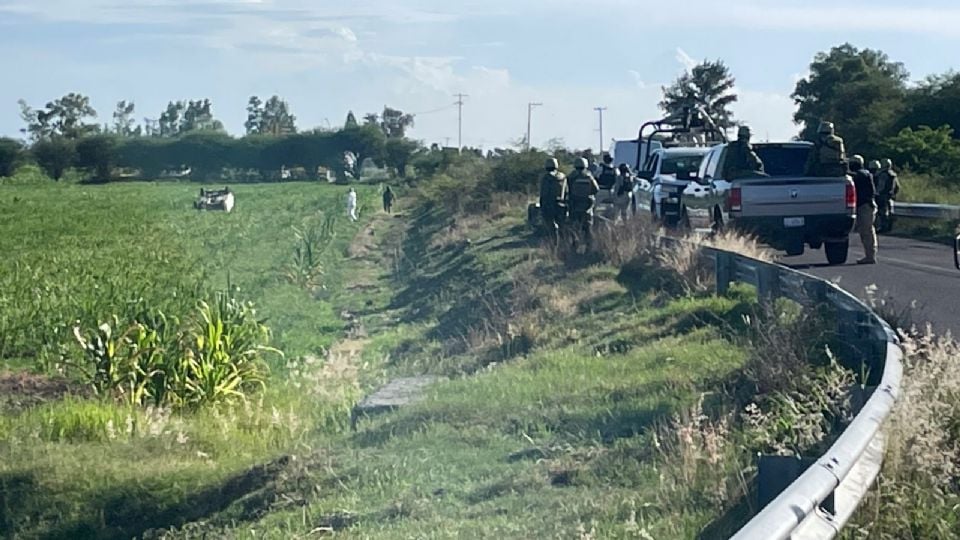 Tampoco se pudo confirmar si derivado de la volcadura hubo sicarios lesionados o si lograron escapar y esconderse entre las parcelas que había en el sitio.