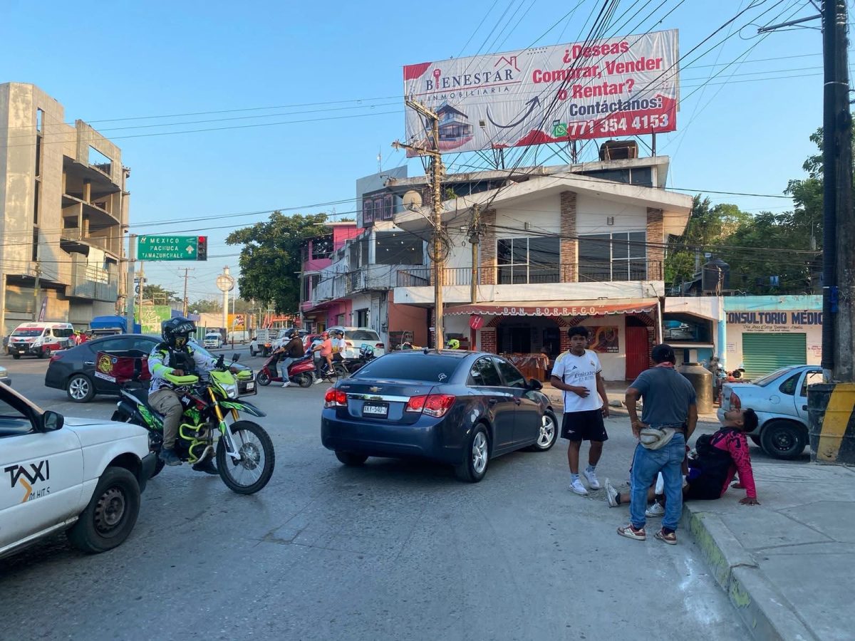 Un motociclista terminó con lesiones leves luego de derrapar mientras circulaba sobre el bulevar central de Huejutla, quedando tendido sobre el asfalto tras el percance.