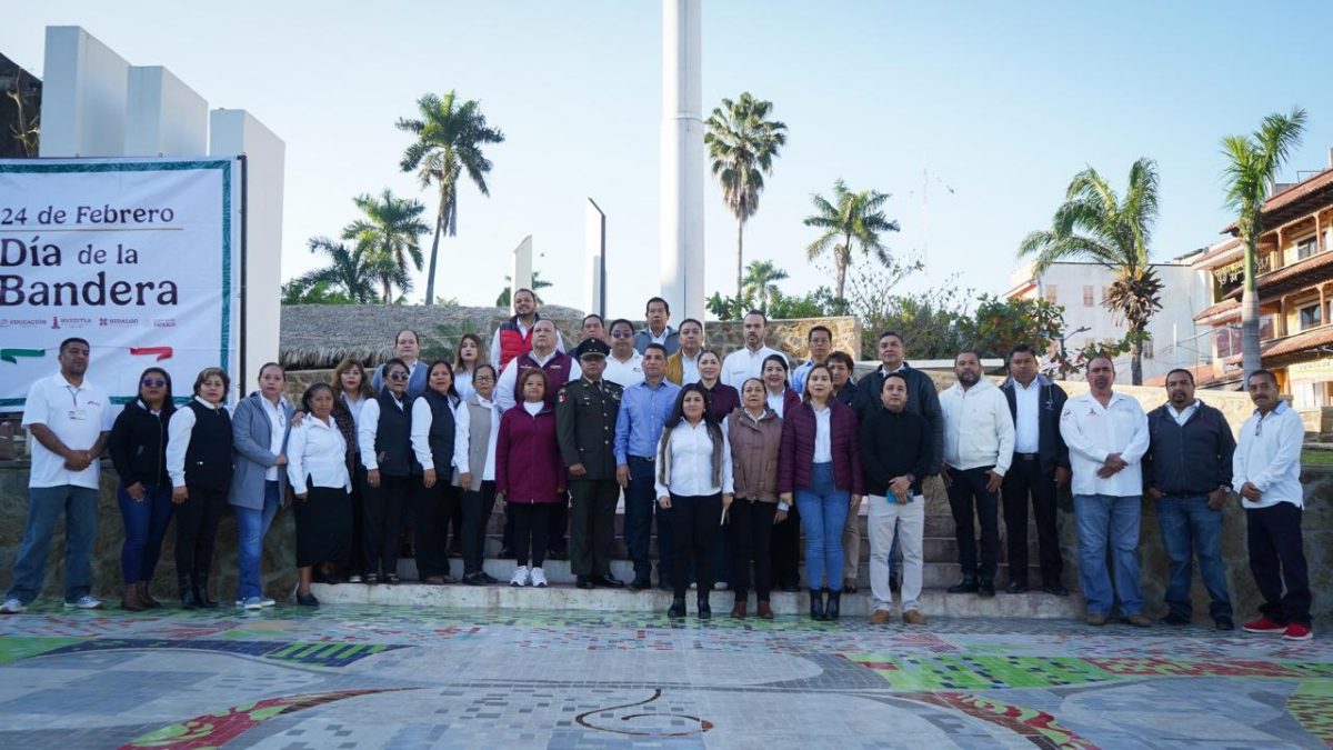 El presidente municipal de Huejutla, Alfredo San Román, encabezó la ceremonia conmemorativa por el Día de la Bandera, acompañado por la presidenta del Sistema DIF Municipal, Kristel Rodríguez Flores.
