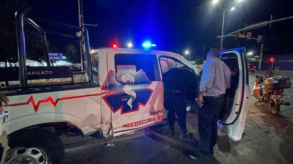Irapuato, Guanajuato.- Un choque entre una patrulla de Medicina Táctica y un automóvil dejó al menos tres personas lesionadas la tarde de este lunes, sobre el crucero semaforizado del bulevar Solidaridad y la avenida Prolongación Calzada de Guadalupe, en la salida hacia Salamanca.
