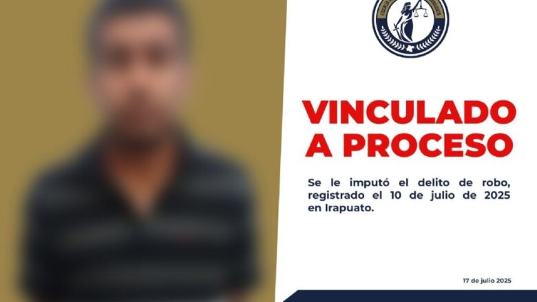Irapuato, Guanajuato.- A solo ocho días de un intento de robo de motocicleta en la colonia Miguel Hidalgo, la Fiscalía General del Estado de Guanajuato logró que un presunto ladrón de vehículos fuera vinculado a proceso penal. Las investigaciones permitieron la detención de Daniel Alberto, a quien se le dictó prisión preventiva como probable responsable del delito de robo calificado.