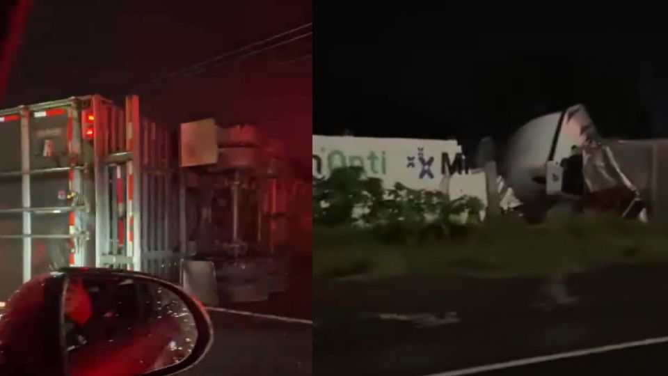 A un costado de la carretera el remolque volcó sobre su costado izquierdo, mientras que la cabina terminó por chocar contra una barda perimetral.