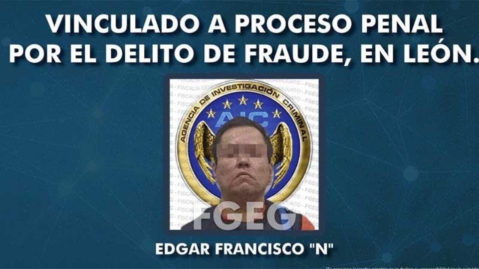 León, Guanajuato.- La Fiscalía General del Estado confirmó que un juez de control vinculó a proceso penal a Edgar Francisco Franco por el delito de fraude.