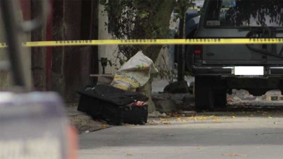 León, Guanajuato.- El cuerpo de una persona fue encontrado en una maleta, afuera de un domicilio del Barrio de San Miguel.