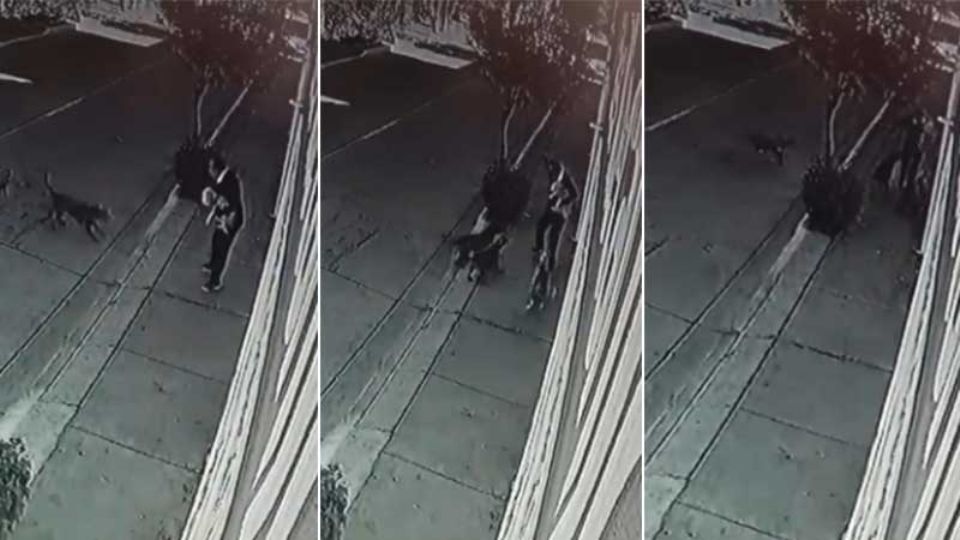 Después, seis perros se le acercaron para ladrarle mientras que la víctima solo intentaba ahuyentarlos con los brazos.