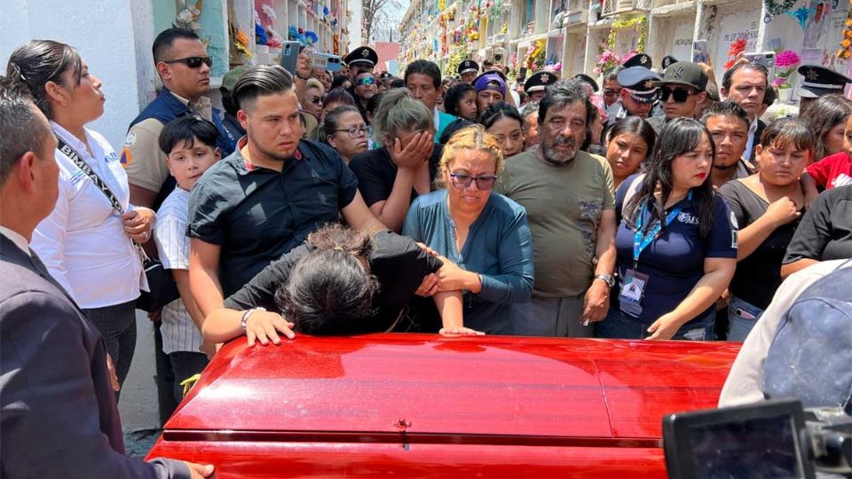 La hija de Daniel y su madre se aferraron al féretro mientras el Presidente Municipal interino, Jorge Jiménez Lona les daba las condolencias.