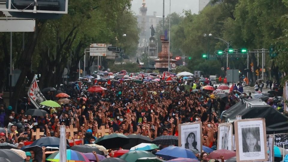 En medio de una protesta masiva que partió del Ángel de la Independencia al Zócalo, Hilda Legideño, madre de Jorge Tizapa, acusó al presidente AMLO de traicionarlos por blindar al Ejército.