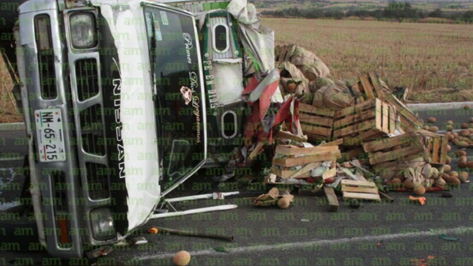 Ellos regresaban de Irapuato donde compraron una tonelada de mamey que venden en carretillas, cuando al transitar por el tramo carretero estalló la llanta trasera derecha ocasionando que la unidad volcara.