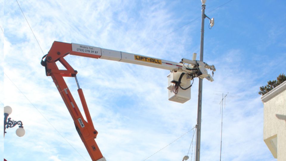 Mediante el uso de grúas, técnicos procedieron a revisar las cámaras, al mismo tiempo que inspeccionaron las cajas de control de los postes en los que se encuentran instaladas.