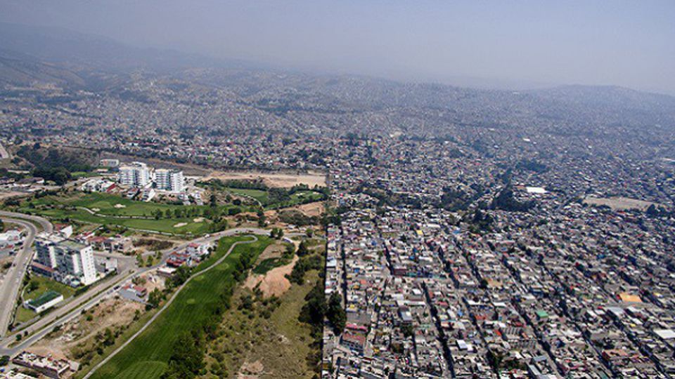 Los terrenos de Bosque Real Country Club, equivalentes a 600 campos de fútbol, separan a su vez a dos ayuntamientos –Huixquilucan y Naucalpan– del cinturón conurbado de la capital, a menos de una hora en coche. Ambos son ejemplos del crecimiento en avalancha del valle de México desde mediados del siglo pasado: una mezcolanza caótica de zonas residenciales de clase media, alguna urbanización de lujo y capas y capas y capas de infravivienda levantadas por los propios habitantes en los cerros. El Estado de México es el más poblado del país –15 millones de habitantes– y también uno de los más desiguales.