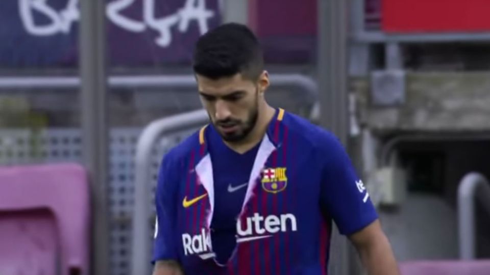 Luis Suárez no está teniendo un gran inicio de temporada y el gol que le han anulado en la recta final ha propiciado su enfado. El uruguayo tuvo que cambiarse la camiseta tras arrancársela por el enfado.