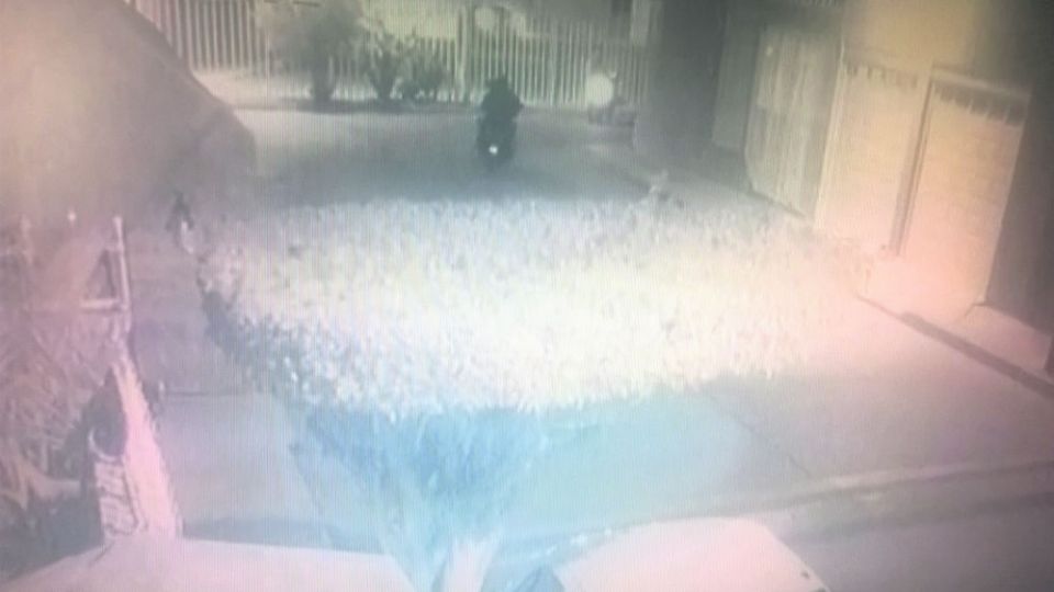 Una cámara de seguridad de la calle Privada Álamos captó el momento en que dos ladrones armados despojan de una motocicleta a un vecino.