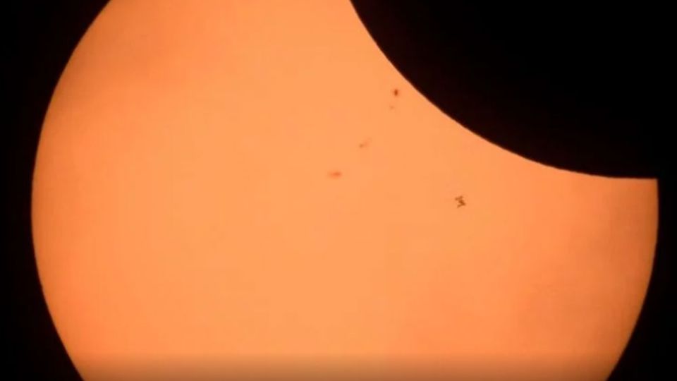 Estos objetos no identificados se observan como puntos en medio del eclipse.