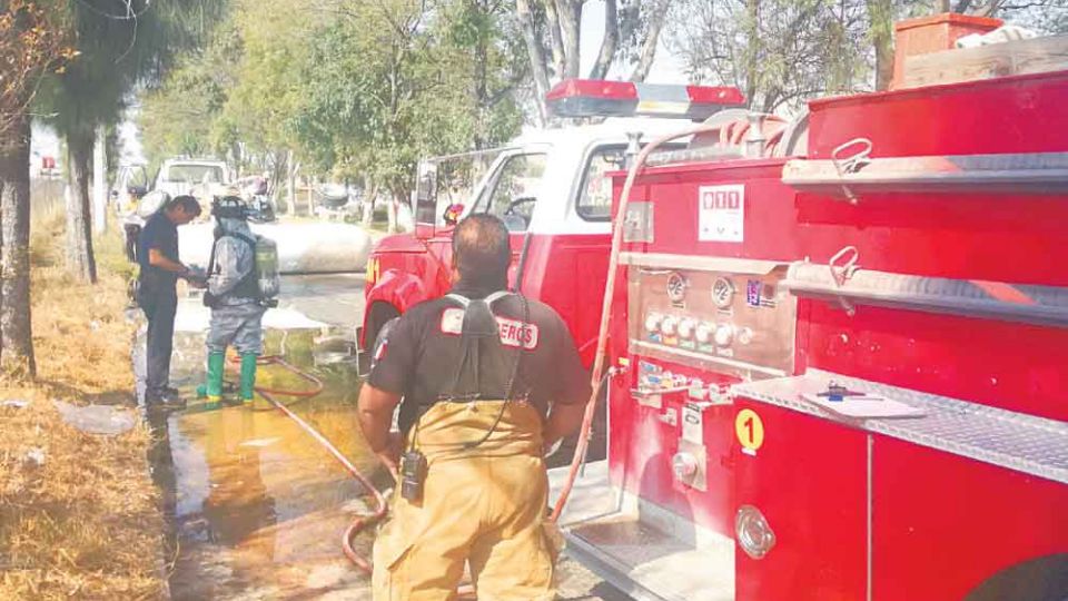 La volcadura generó que el tanque se dañara y registrara una fuga por lo cual los tripulantes de la camioneta dieron aviso al 911 y al lugar se trasladaron bomberos y Protección Civil quienes iniciaron maniobras para evitar que la fuga se propagara y causara algún accidente.