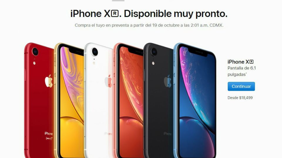 El otro modelo presentado durante el evento anual de Apple es el iPhone Xr, que llegará hasta el 26 de octubre con un costo inicial de $18,499 y la preventa comenzará el 19 de ese mismo mes.