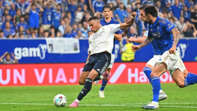 Oviedo, España.- No levanta Real Oviedo. El cuadro de Grupo Pachuca sumó su segundo descalabro en La Liga, ahora contra Real Madrid, por el que destacó el francés Kylian Mbappé con dos goles.