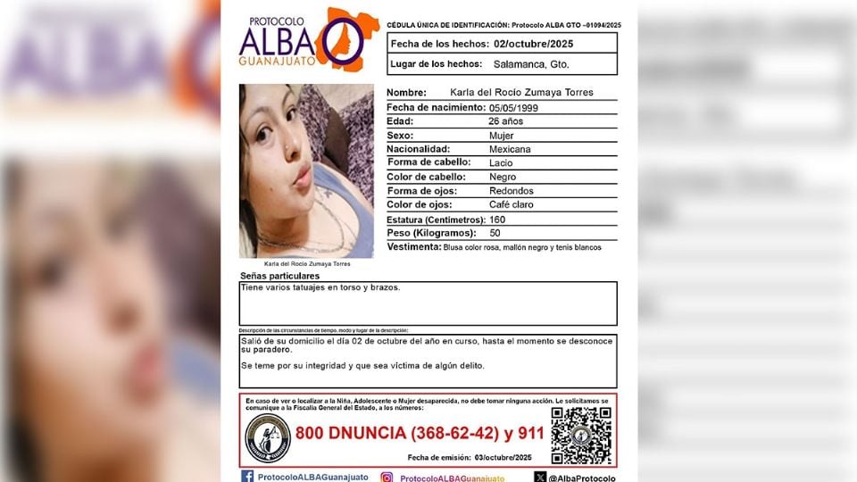 Publicado enSalamanca Alerta en Salamanca y todo Guanajuato: Ilocalizable Karla del Rocío Zumaya Torres, urge encontrarla por Redacción AM 4 octubre, 2025