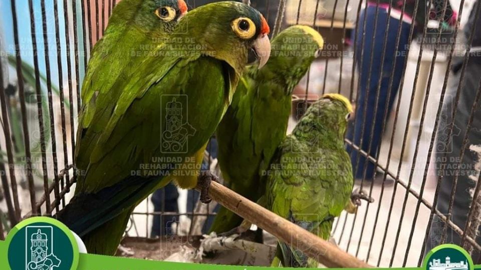 La Unidad de Rehabilitación de Fauna Silvestre agregó que dos de los pericos estaban teñidos de las plumas de su cara para hacerlos pasar por loro rey.