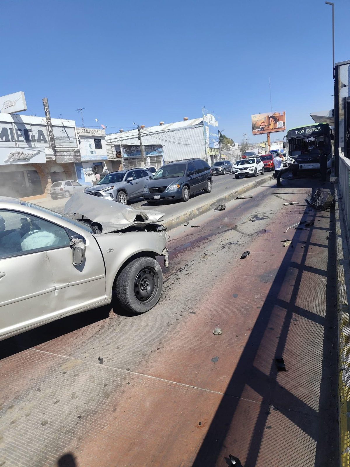 Un accidente se registró la mañana de este miércoles en la salida a la carretera México-Pachuca, a la altura de la estación Matilde, donde una unidad del Tuzobús impactó contra un automóvil particular.