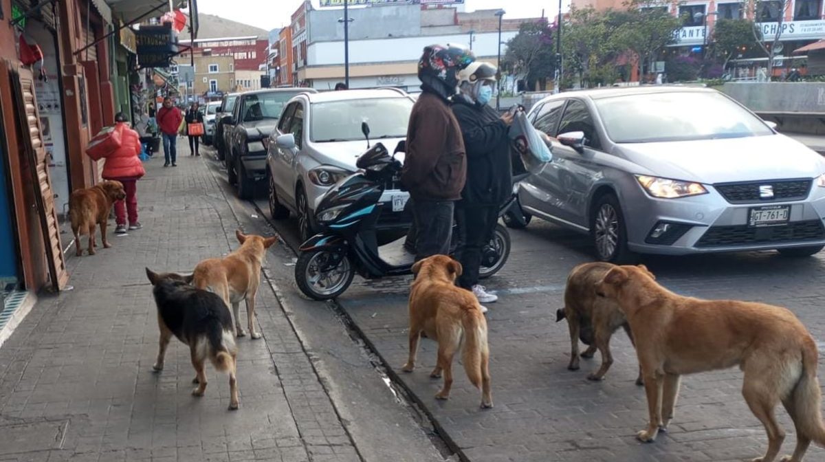 La señora de los perros se convirtió en parte del paisaje urbano en el centro histórico de Pachuca.